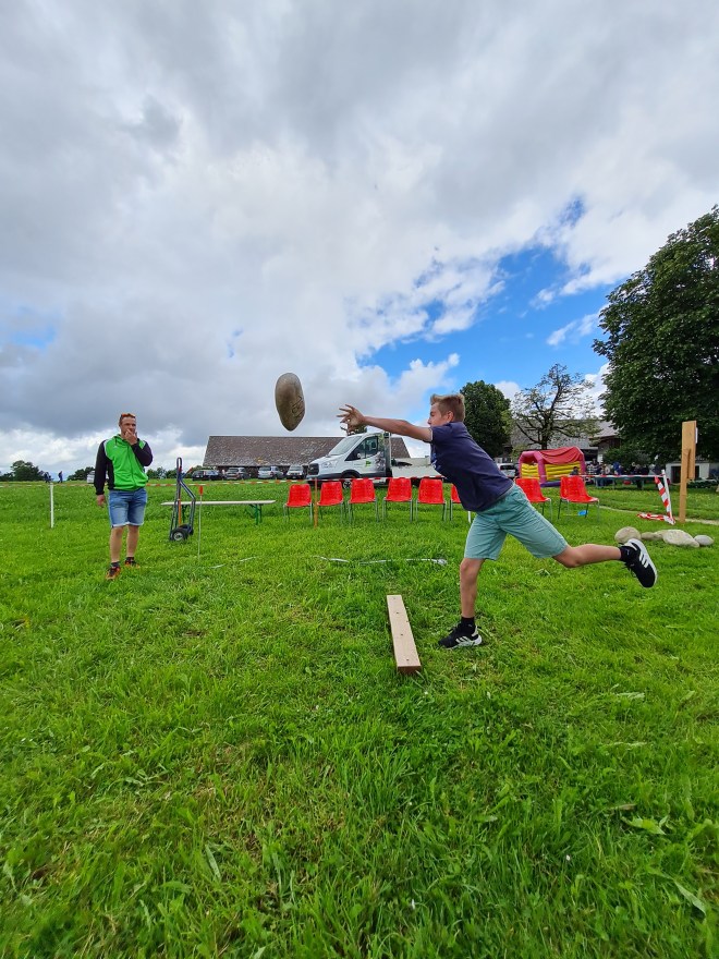 Auch im 2021 führte der Sportverein Wasen ein Steinstossen an der Chilbi auf dem Hinterarni durch. Ein spannender Wettkampf mit den Steinen aus dem Hornbach war garantiert – und gute Unterhaltung ebenfalls. Bilder und die Rangliste zum Wettkampf: