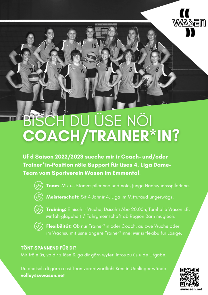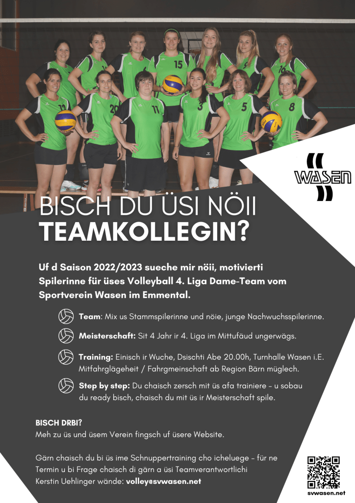 Mehr Infos findest du in den Flyers oder gerne gibt dir unsere Teamverantwortliche Kerstin Uehlinger weitere Auskünfte unter volley@svwasen.net